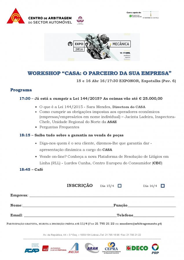 Vamos organizar dois Workshops para auxiliar as empresas do sector a cumprir as obrigações da Lei 144/2015 e apresentar a Plataforma de Resolução de Litígios on-line.